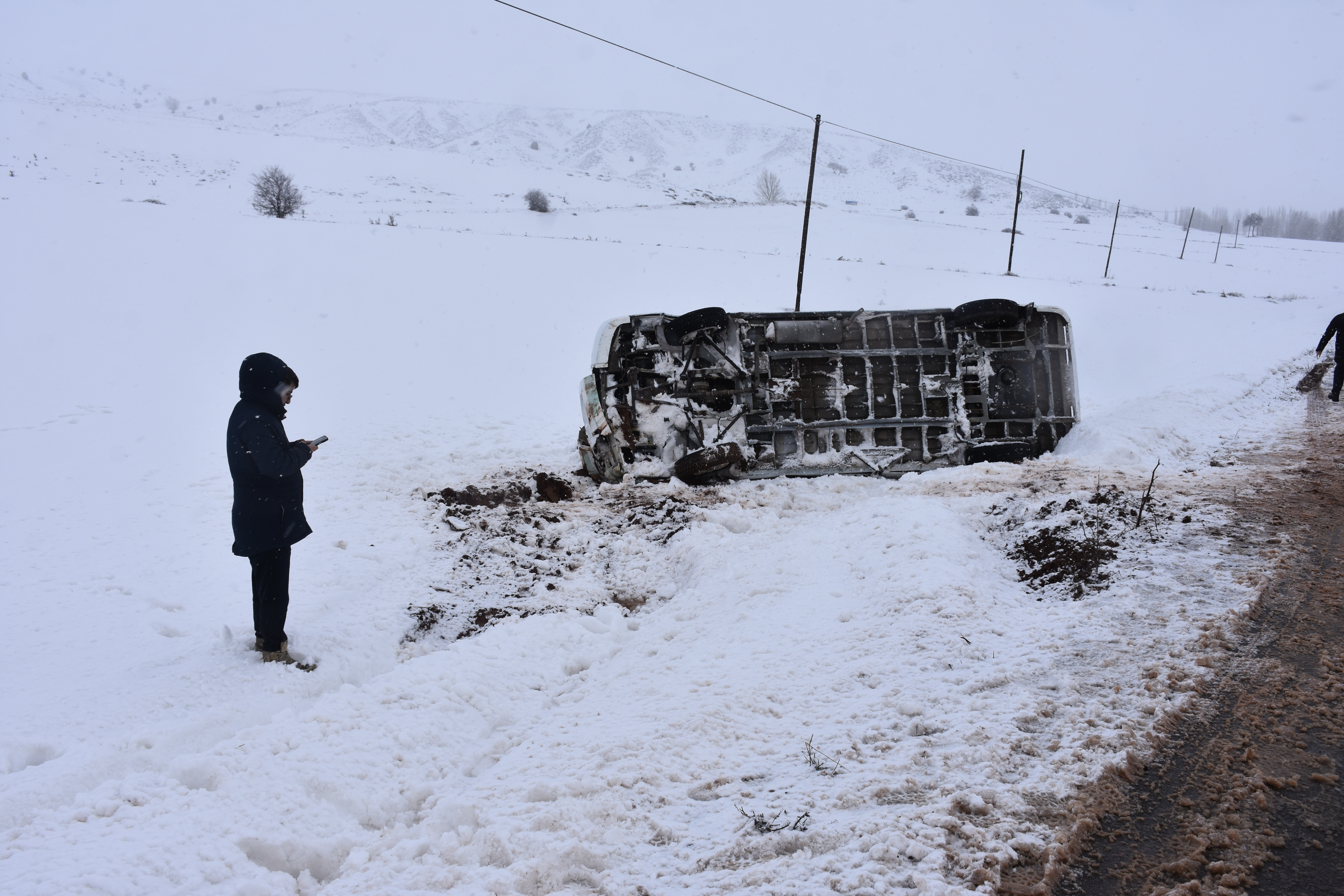 Kaza, saat 08.30 sıralarında Güneykaya beldesi yakınlarında meydana geldi. Çevredeki köylerden aldığı öğrencileri Güneykaya beldesindeki okullarına taşıyan Mehmet Ateş’in kar yağışı nedeniyle kayganlaşan yolda kontrolünü yitirdiği 58 AHA 260 plakalı servis minibüsü, şarampole devrildi. İhbar üzerine kaza yerine sağlık ve jandarma ekipleri sevk edildi. Kazada Mehmet Ateş ve servisteki 13 öğrenci yaralandı. Ekiplerin ilk müdahalesinin ardından yaralılar, kentteki hastanelere kaldırılarak tedaviye alındı. Yaralıların sağlık durumlarının iyi olduğu bildirildi.