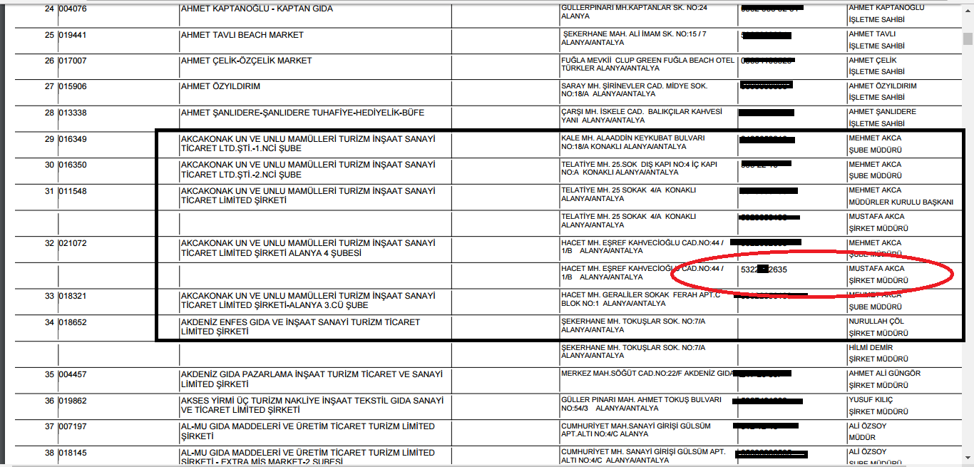 2010 yılında Alanya Konaklı’daki Menderes Ortaokulu’nda göreve başlayan okul müdürü Mustafa Akça, aynı zamanda ‘Akçakonak Un ve Unlu Mamülleri Turizm İnşaat Ticaret ve Sanayi Limited Şirketi’nin de müdürlüğünü üstleniyor.
