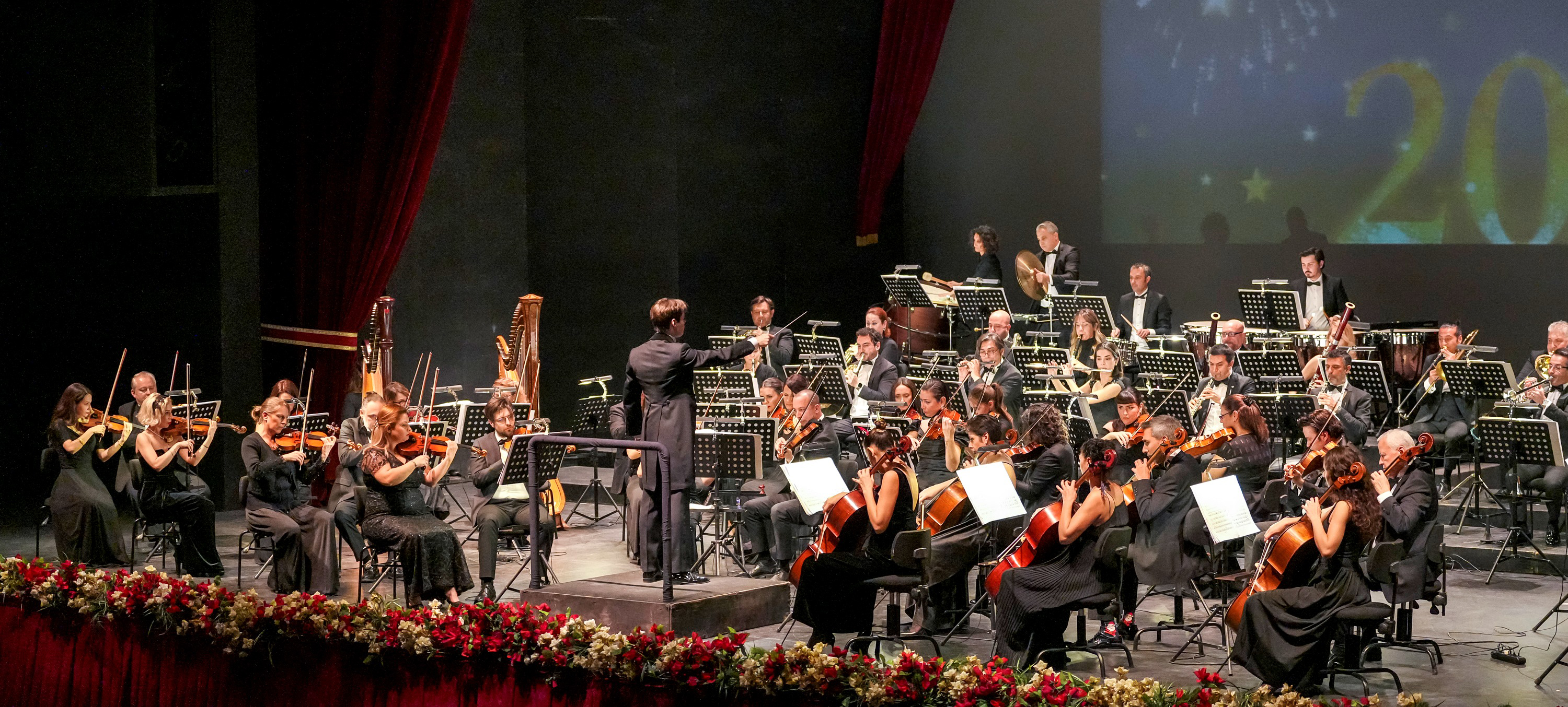 Besteci PyotrIlyich Tchaikovsky'nin 'Fındıkkıran Balesi'nden 'Çiçek Valsı ve Pas de Deux' bölümleri sahneye taşınırken, gecenin perdesi Johann Strauss'in 'Radetzky Marşı' ile kapandı. Salonu dolduran yerli ve yabancı izleyici, yeni yıl ruhunu senfonik bir atmosfer eşliğinde yaşadı. Şef Maximilian Cem Haberstock ile orkestra üyeleri ayakta alkışlandı.