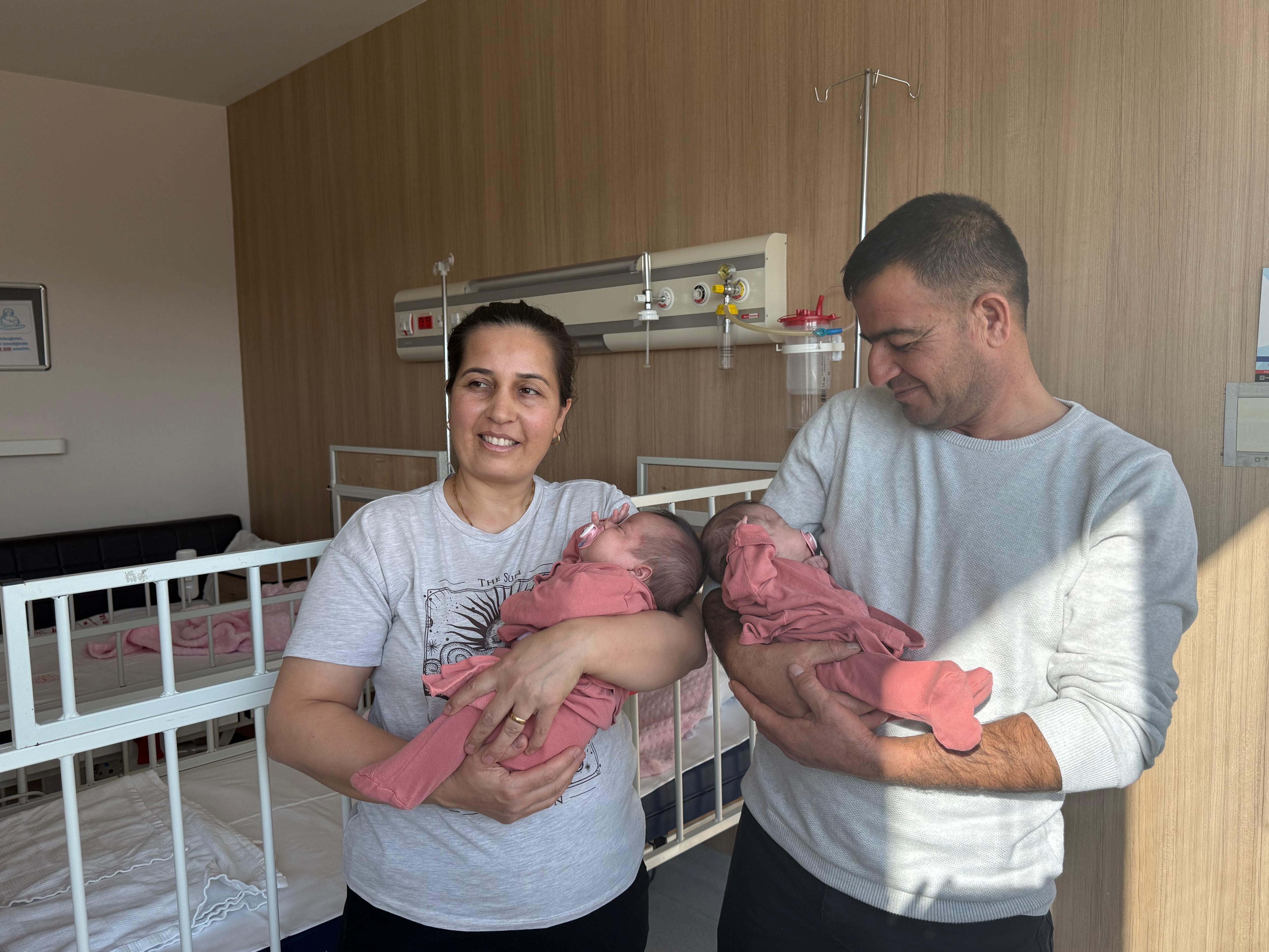 Hatay'da yaşayan Hanife-Ercan Hekimoğlu çifti, 3 kız çocuklarının ardından 8 yıl sonra ikiz bebek beklediklerini öğrendi. İkiz gebelik nedeniyle yapılan kontroller sırasında erken doğum riski saptanınca anne Hanife Hekimoğlu, Ankara'daki Bilkent Şehir Hastanesi'ne sevk edildi. Hanife Hekimoğlu, geçen yıl 22 Ekim'de 30 hafta 5 günlük olan ikiz bebeklerini prematüre olarak dünyaya getirdi. İkizlerden 1 kilo 580 gram olarak doğan Duru ile 940 gram doğan Defne'de kalp rahatsızlıkları belirlendi. Pulmoner kapak darlığı bulunan Duru'ya doğumdan sonra 4'üncü gün, aort koarktasyonu saptanan Defne'ye yeterli kiloya ulaşınca 36'ncı günde anjiyo uygulaması yapıldı. İkizler, bir süre yoğun bakımda kaldıktan sonra sağlıklarına kavuşarak taburcu edildi.