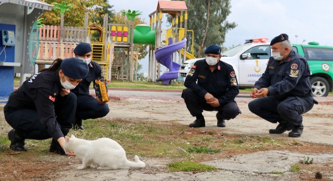 Jandarma, kısıtlamada sokak hayvanlarını besledi