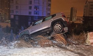 Otomobil, 30 metre yükseklikte asılı kaldı