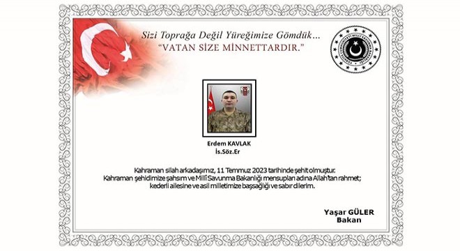 MSB: Silah kazasında ağır yaralanan asker şehit oldu