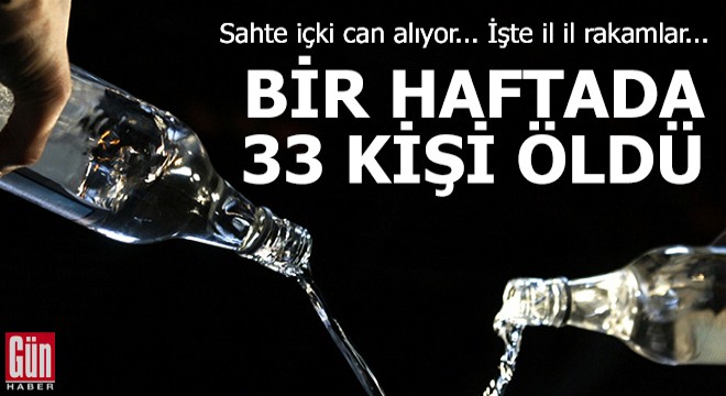 Gaziantep, Erzincan, Antalya, Kahramanmaraş, Amasya, Aksaray ve Sivas‘ta 33 kişi sahte içki yüzünden öldü.