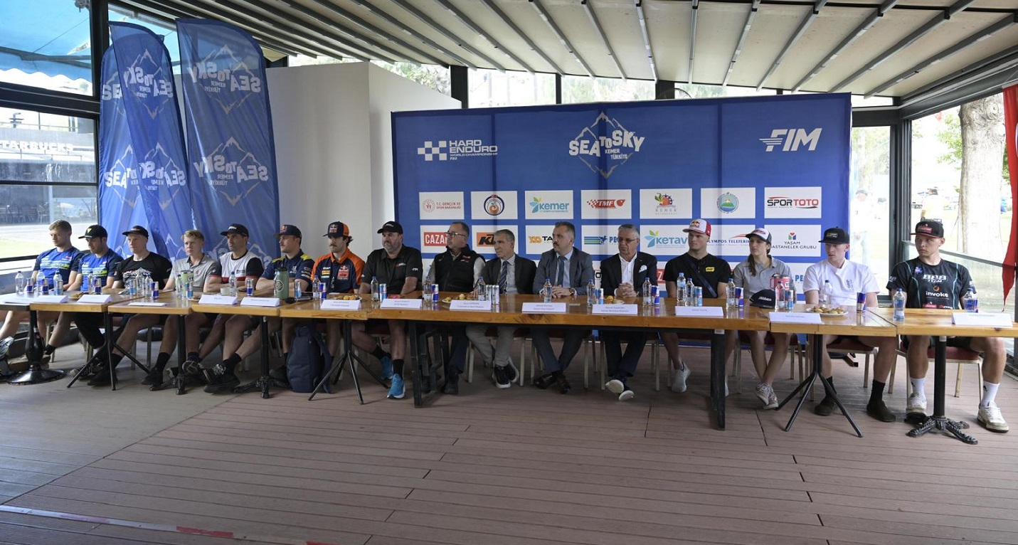 Sea To Sky Enduro Motosiklet Yarışı öncesi düzenlenen basın toplantısına; Kemer Kaymakamı Ahmet Solmaz, Kemer Belediye Başkanı Necati Topaloğlu, Gençlik ve Spor İl Müdürlüğü Spor Faaliyetleri Şube Müdürü İzzet Tekeli, FIM Hard Enduro Koordinatörü Ross Whitehead, Kemer Enduro Motosiklet Kulübü Başkanı Semih Özdemir ile sporculardan Teodor Kabakchiev, MarioRoman, Graham Jarvis, Matt Green, Alfredo Gomez, Billy Bolt, Manuel Lettenbichler, Wade Young, SandraGomez ve Danila Chernyaev katıldı.