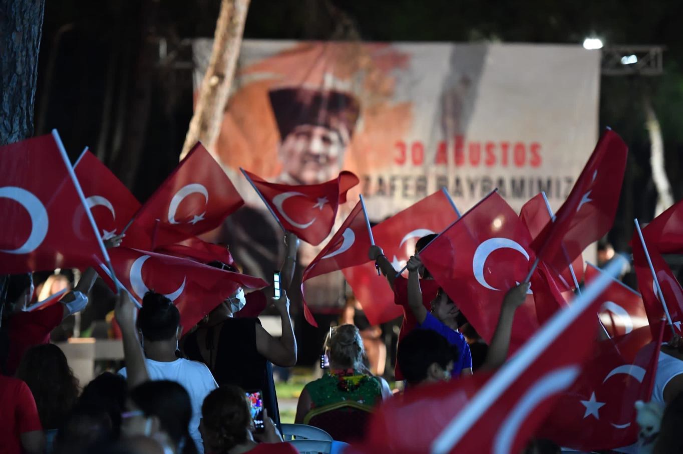 Konyaaltı Belediyesi, 30 Ağustos Zafer Bayramı dolayısıyla HayatPark’ta düzenlediği etkinlikle katılımcılara keyifli bir akşam yaşattı. Ailelerin yoğun ilgi gösterdiği etkinlikte, Konyaaltı Belediyesi Oda Orkestrası sahne aldı. Performansları ile büyük beğeni toplayan orkestradan sonra, Konyaaltı Belediyesi Halk Oyunları Topluluğu izleyenlere keyifli dakikalar yaşattı. Etkinlikte konuşan Konyaaltı Belediye Başkanı Semih Esen, dünyada eşi benzeri olmayan bir zaferin anmasını gerçekleştirdiklerini ifade etti. Kurtuluş Savaşı’nda vatanını korumak için Anadolu’da filizlenen direniş hareketlerinin 30 Ağustos günü zafer elde ederek Türk milletinin geri çekilme kaderini değiştirdiğini ifade eden Esen, Gazi Mustafa Kemal Atatürk öncülüğünde elde edilen bu büyük zaferle işgalci ülkelere geçit verilmediğinin altını çizdi.