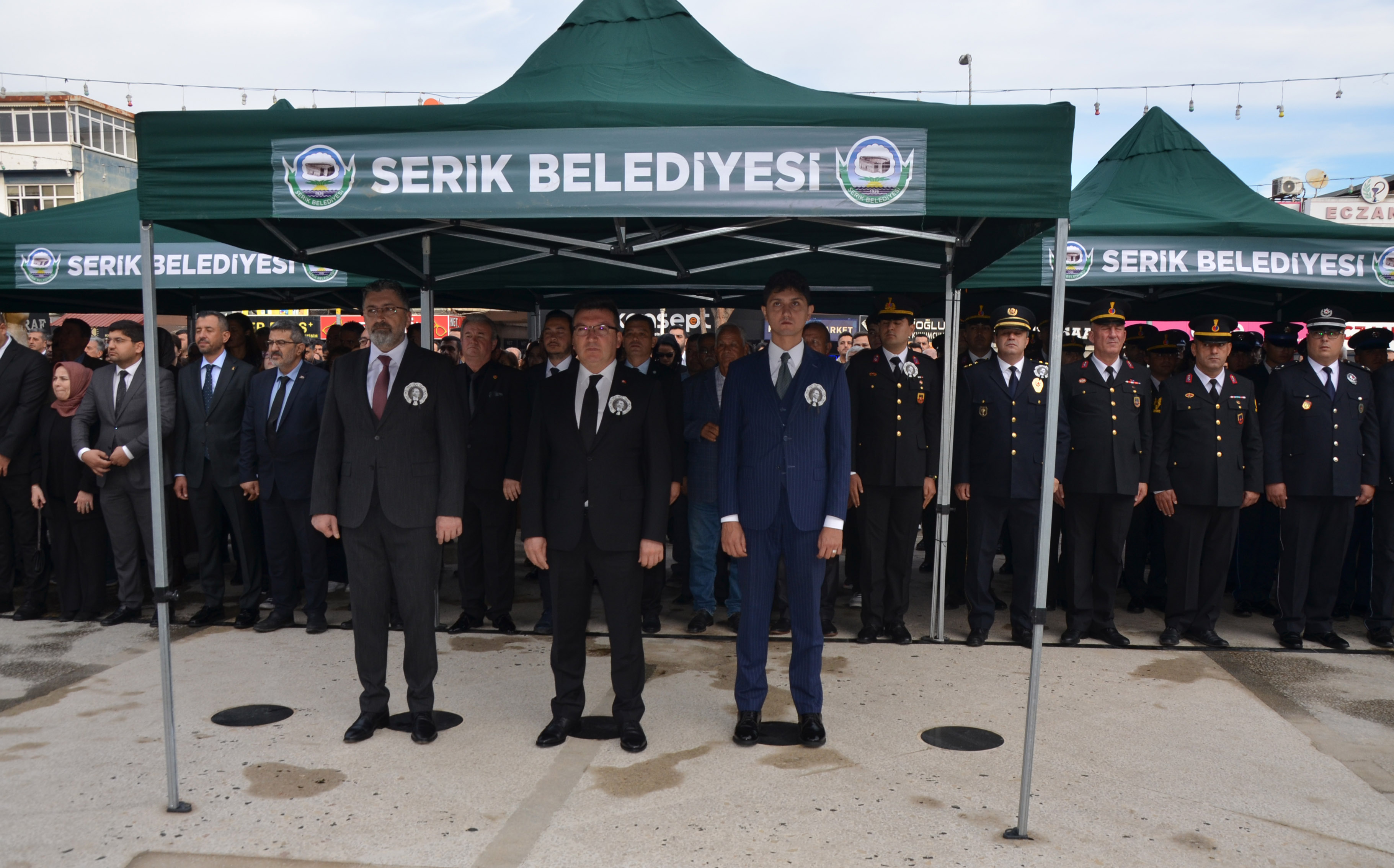 Cumhuriyet Meydanı düzenlenen törene Kaymakam Cemal Şahin, Belediye Başkanı Kadir Kumbul, Serik Cumhuriyet Başsavcısı Muhammed Kaan Özer, siyasi partiler, kamu kurumları ve STK'ların temsilcileriyle vatandaşlar ve öğrenciler katıldı. Kaymakam Cemal Şahin ve Belediye Başkanı Kadir Kumbul, Atatürk Anıtı'na çelenk sunumu gerçekleştirdi. Saat 09.05'i gösterdiğinde 2 dakikalık saygı duruşunda bulunuldu. Ardından hep birlikte İstiklal Marşı okundu. Tören alanı dışındaki vatandaşlar da cadde ve sokaklarda bulundukları yerde durarak Ata'ya saygılarını gösterdi.