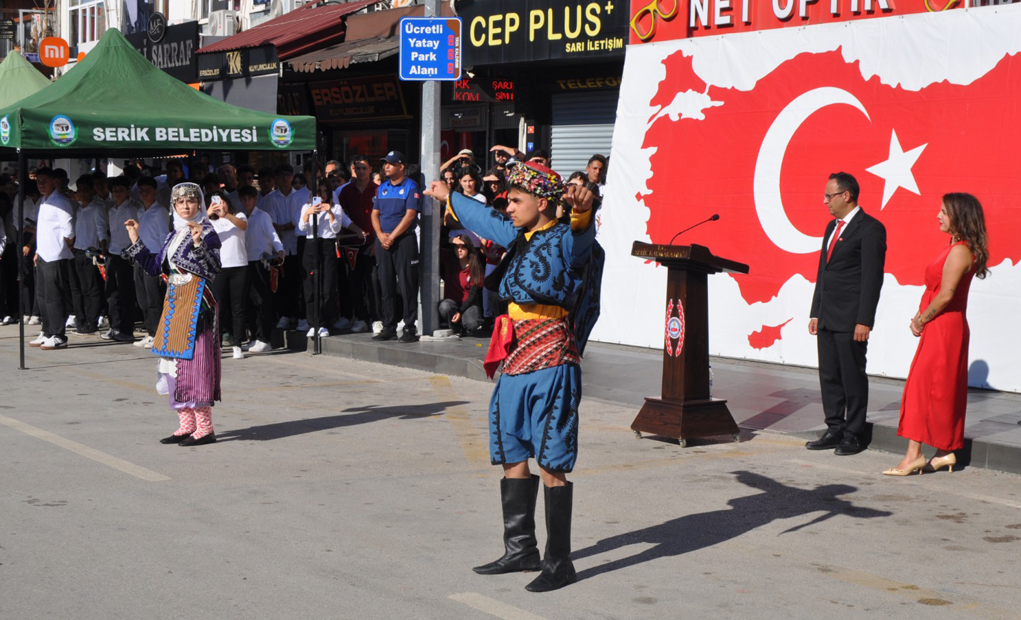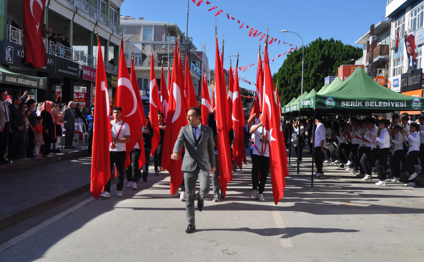 İlçede 29 Ekim Cumhuriyet Bayramı ve Cumhuriyetin 102'ncı kuruluş yılı dolayısıyla gerçekleştirilen kutlama programı dün çelenk sunma töreni ile başladı. Bugün Serik Atatürk Caddesi'nde devam eden kutlamalara, Kaymakam Cemal Şahin, Serik Belediye Başkanı Kadir Kumbul, Cumhuriyet Başsavcısı Muhammed Kaan Özel, daire müdürleri, siyasi partiler, sivil toplum kuruluşları, öğrenciler ve vatandaşlar katıldı.
