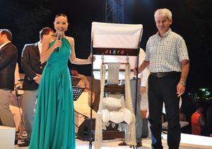 Bursa'nın İnegöl İlçesi'nde konser veren Ebru Gündeş'e kızı Alara için ahşap salıncak hediye edildi.