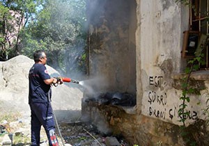 ANTALYA'nın Gazipaşa İlçesi'nde metruk evde çıkan yangın itfaiyenin müdahalesiyle ...