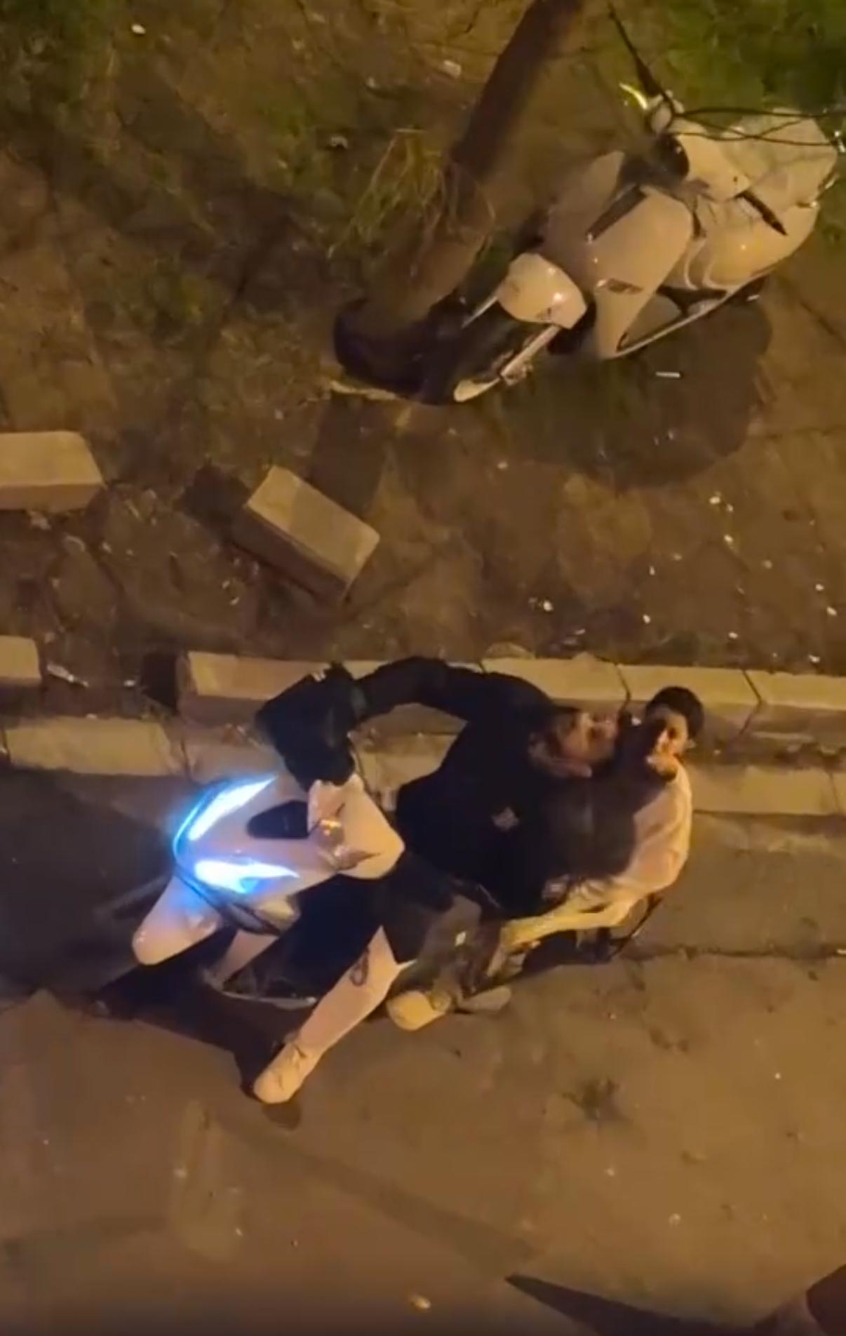 Birçok kez küfür de eden kişi, kadını saçından bir daha çektikten sonra motosikletine doğru yöneldi. Ardından da kadını tehdit ederek motosikletine bindirdi. Yaşananları çevredekiler cep telefonu kamerasıyla kaydederken, kadının şikayetçi olmadığı öğrenildi.