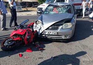 ANTALYA'nın Serik İlçesi'nde motosikletle otomobilin çarpıştığı kazada, 2 polis memuru yaralandı.