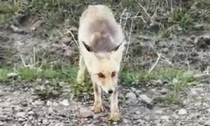 Doğada aç kalan tilkiyi elleriyle beslediler