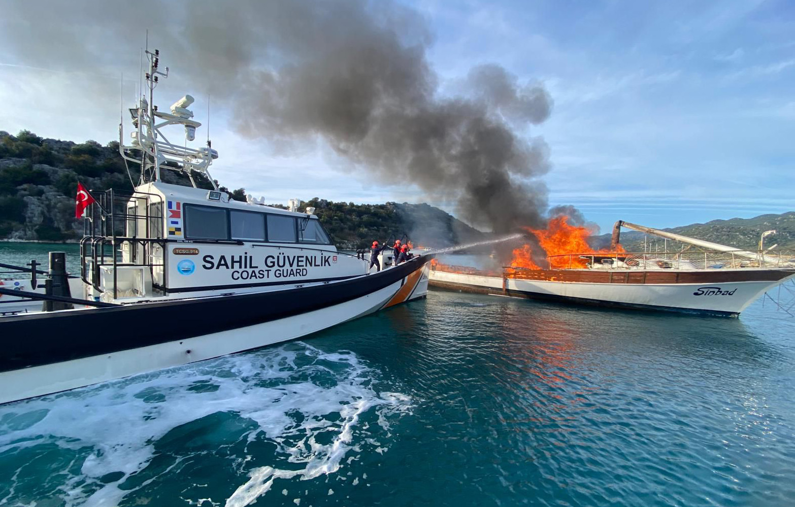 Olay, bugün saat 08.00 sıralarında meydana geldi. Üçağız Limanı'nda bağlı bulunan 'Sinbad' isimli ticari yatta yangın çıktı. Yatın alev aldığını gören çevredekiler kendi imkanlarıyla alevlere müdahale etti.