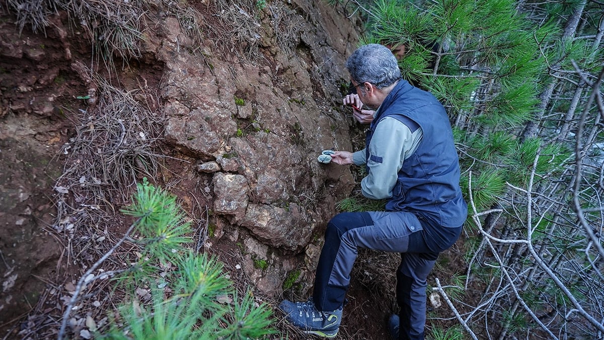 Öte yandan, Sındırgı’nın Yaylacık, Emendere, Aktaş ve Sinandede mahalleleri arasındaki dağlık alanda tespit edilen fayın yüzeydeki bölümü görüntülendi.