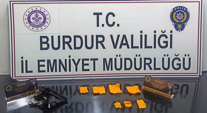 Burdur İl Emniyet Müdürlüğü Narkotik Şube Müdürlüğü ekiplerinin kent merkezinde şüphe üzerinde durdurduğu otomobilde bulunan A.M.G. ve T.G.'nin üzerlerinde ve otomobilde yapılan aramada 1045 kullanımlık sentetik kannabinoid enjekte edildiği değerlendirilen kâğıt parçaları ele geçirildi. Emniyetteki işlemlerinin ardından adliyeye sevk edilen şüpheliler 'Uyuşturucu veya uyarıcı madde imal ve ticareti' suçu kapsamında tutuklandı.