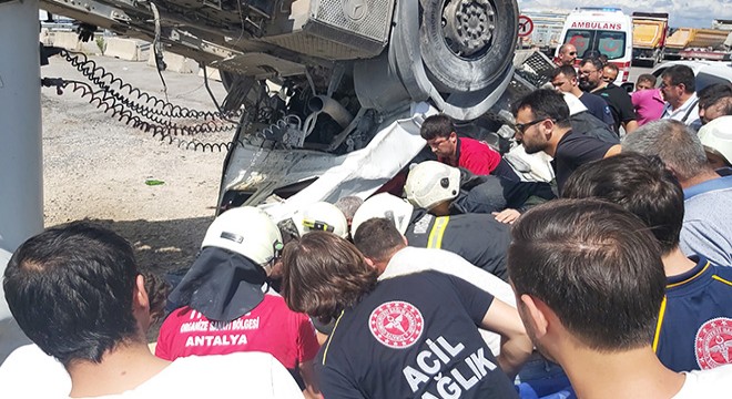 ANTALYA'nın Döşemealtı ilçesinde devrilen çimento yüklü TIR'ın şoförü ...