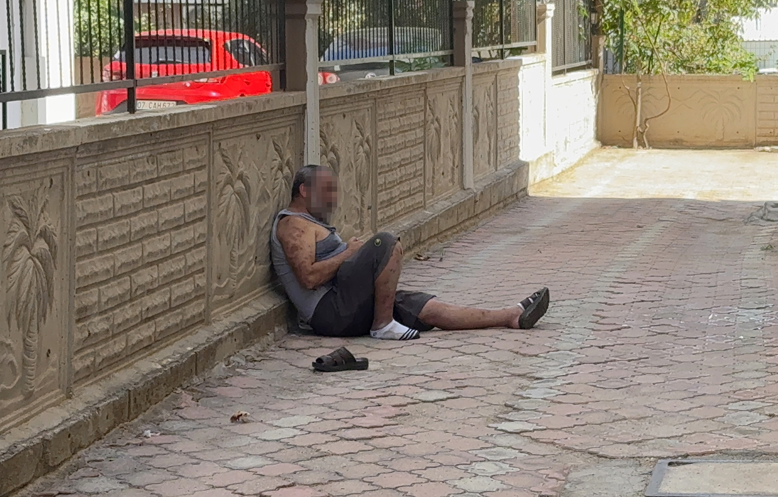 Polis ekibi, Ertan K.'nin üzerine 5 litrelik bidondan su dökerek tinerin akmasını sağladı. Ertan K.'nin arkadaşı ise eliyle dökülen suyu vücuduna yaydı. Evden tişörtü getirilen Ertan K., gözüne tiner gelmesinden dolayı bir süre ayağa kalkamadı. Ertan K., ekiplerin ve arkadaşı tarafından ayağa kaldırılarak ambulansa kadar götürüldü. Ertan K., ilk müdahalesinin ardından Antalya Eğitim ve Araştırma Hastanesi'ne sevk edildi.