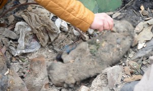 Çöplükte biri yanmış 2 köpek ölüsü bulundu