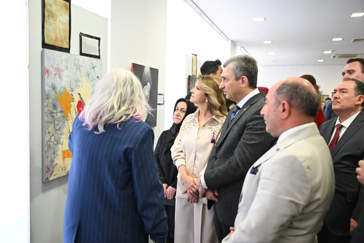 Törene; Vali Hulusi Şahin ve eşi Ebru Şahin, Muratpaşa Kaymakamı İhsan Kara, Aile ve Sosyal Hizmetler İl Müdürü Galip Sökmen, Aksu Belediye Başkan Vekili Mehmet Alptekin, Konyaaltı Belediye Başkan Vekili Müge Gezginci, Küratör Ayşe Özmak Mercan, STK temsilcileri ve resim sanatçıları katıldı.
