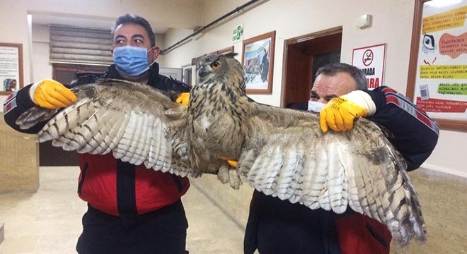 IĞDIR'da soğuk havada bitkin düşen puhu kuşu, 2 bina arasındaki boşluğa ...