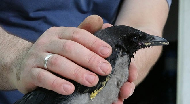 Sultangazi'de, ağaçtaki yuvasından düşerek, yaralanan yavru kargaya esnaf ...