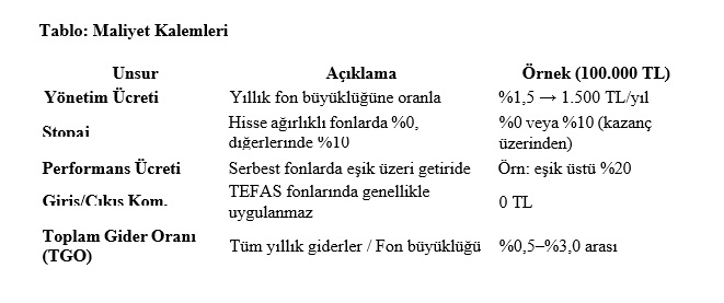 Fonların maliyet yapısını anlamak, uzun vadede getiri optimizasyonunun temelidir. Türkiye'de yatırım fonu maliyetleri şu kalemlerden oluşur: