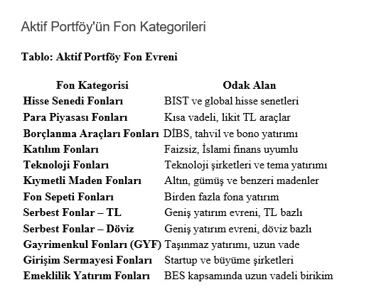 Tüm Aktif Portföy fonlarını karşılaştırmak, performans verilerini incelemek ve size en uygun fonu bulmak için Aktif Portföy Fon Kataloğu'nu ziyaret edin.