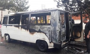 SİVAS'ta, park halindeki minibüs alev aldı. İtfaiye ekiplerince söndürülen ...