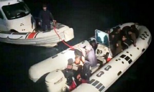 MUĞLA'nın Bodrum ilçesi açıklarında, lastik bot içinde 13 kaçak göçmen ile 1 organizatör yakalandı.