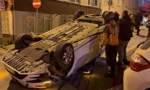 Park halindeki 3 araca çarpan otomobil, takla attı
