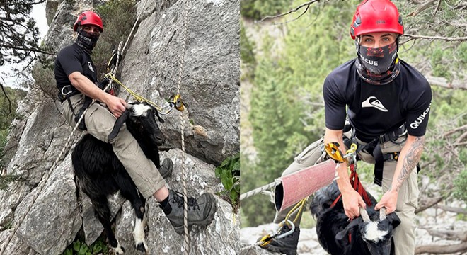 Antalya'da kayalıkta mahsur kalan keçi ve kuzusu kurtarıldı