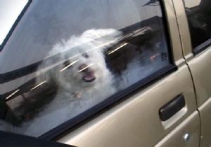 OTOMOBİLDE KÖPEKLERİ BIRAKINCA